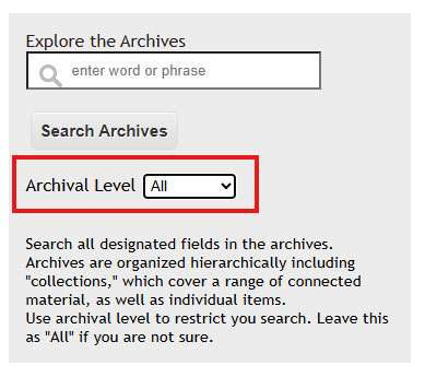 Drop-down option to select the level of the archival record to be searched.